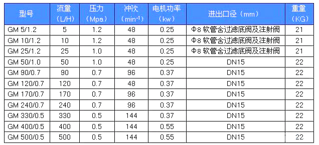 GM型隔膜式計(jì)量泵材質(zhì)列表