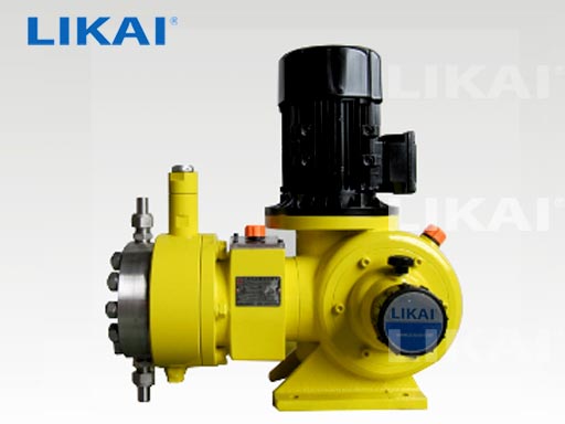 1.液壓隔膜式式計量泵液力端的柱塞由傳動端的曲柄連桿機構(gòu)的往復(fù)運動帶動進行工作。柱塞在液壓腔內(nèi)作往復(fù)運動,促使液壓油的壓力變化,使液壓隔膜式撓曲位移來輸送介質(zhì),液壓腔內(nèi)液壓油量的相對穩(wěn)定,由三闊的功能來保持。