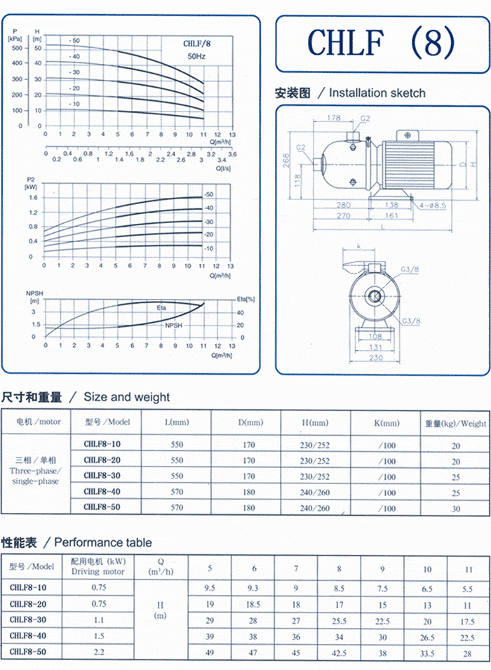 CHL,CHLK和CHLF(T)型泵主要用于家庭型中央空調(diào)循環(huán)及工業(yè)上液體的傳輸。如脫礦物質(zhì)水、軟水、凈化系統(tǒng)、輕油等的循環(huán)和增壓。